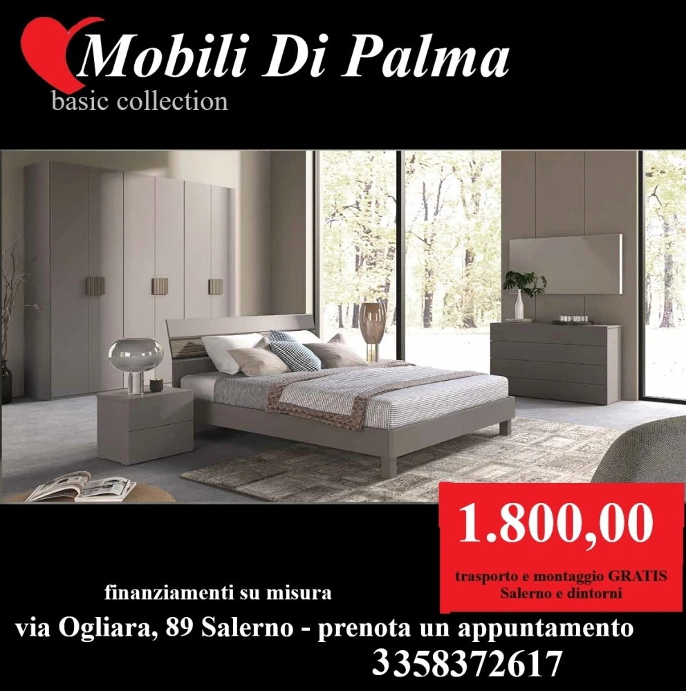 Camere da letto matrimoniali a Salerno: scopri l’offerta Basic Collection di Mobili Di Palma. Se cerchi una soluzione di qualità a un prezzo accessibile in provincia di Salerno, la nostra selezione esclusiva è pensata per offrirti arredi solidi e di design, con trasporto e montaggio inclusi nel prezzo.